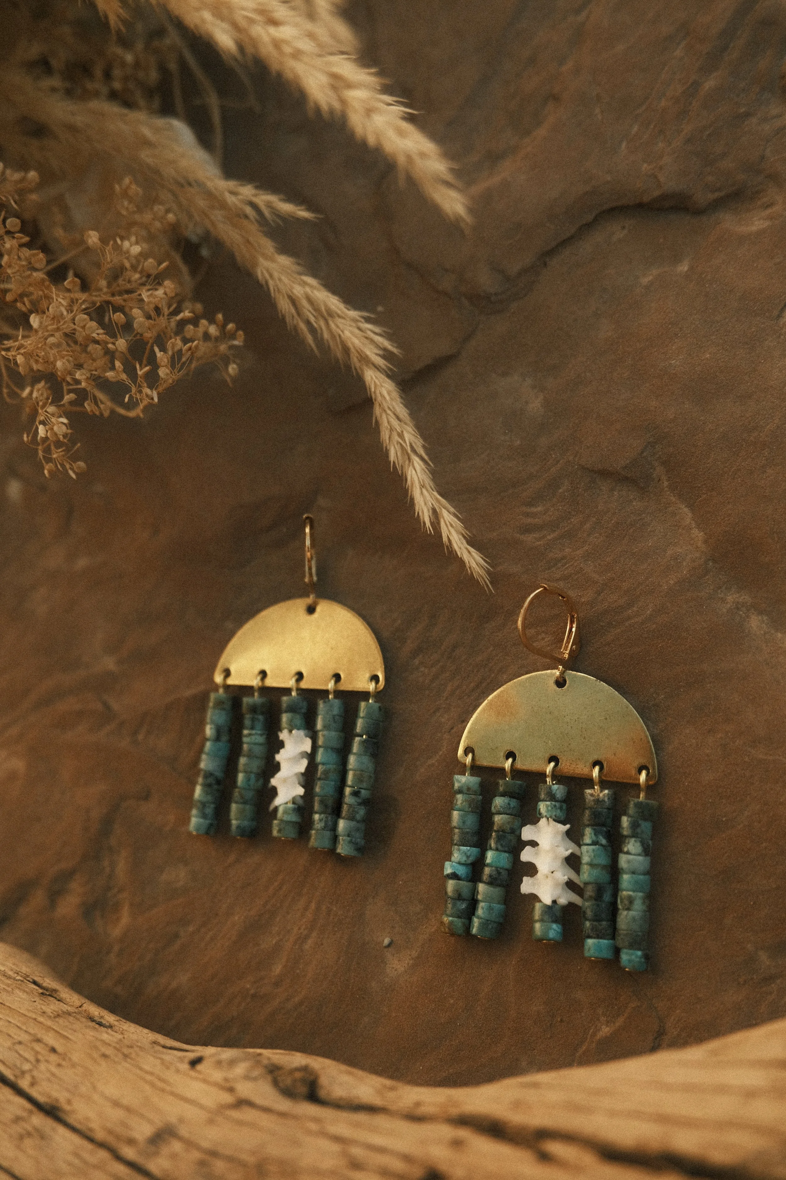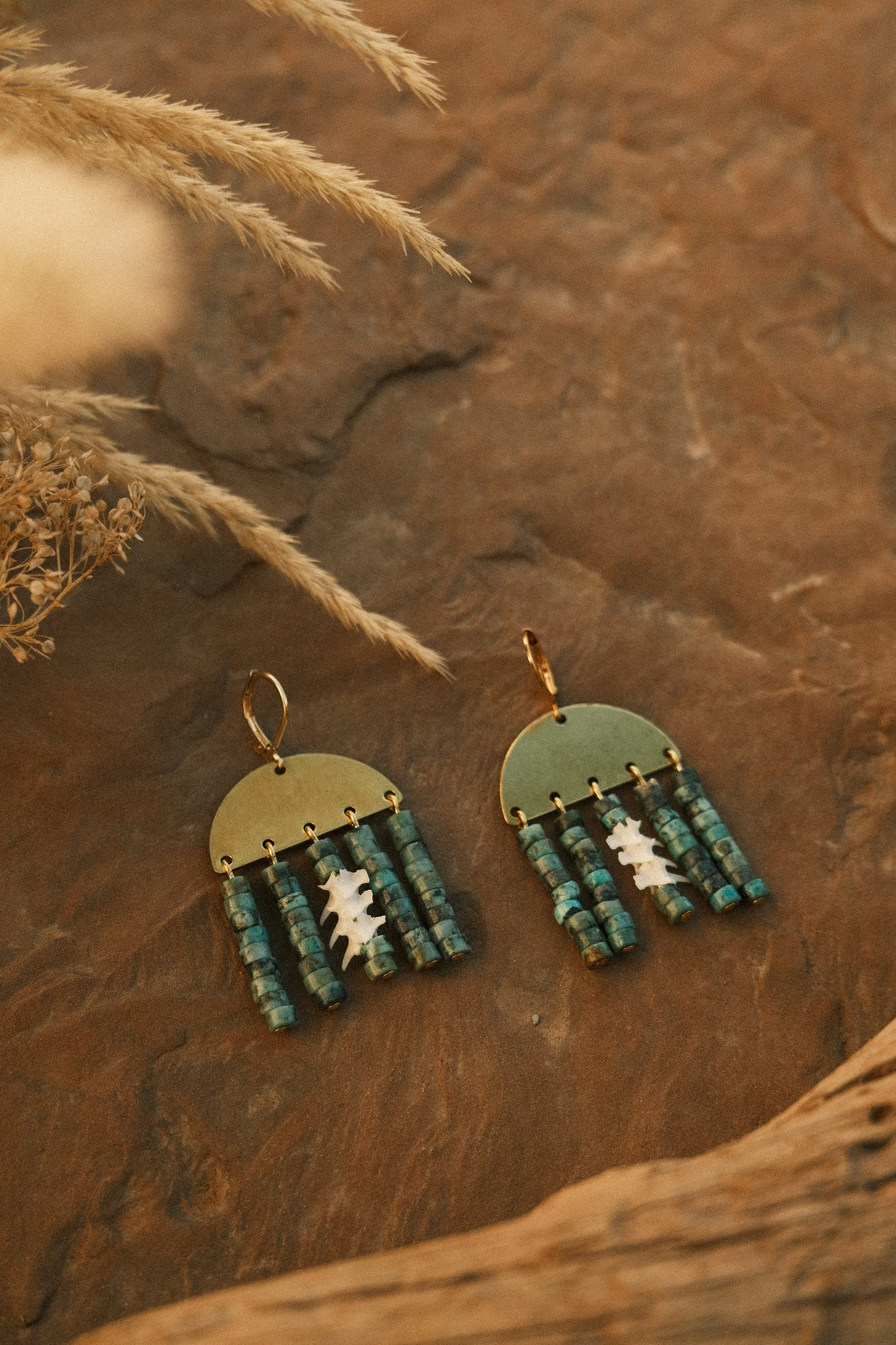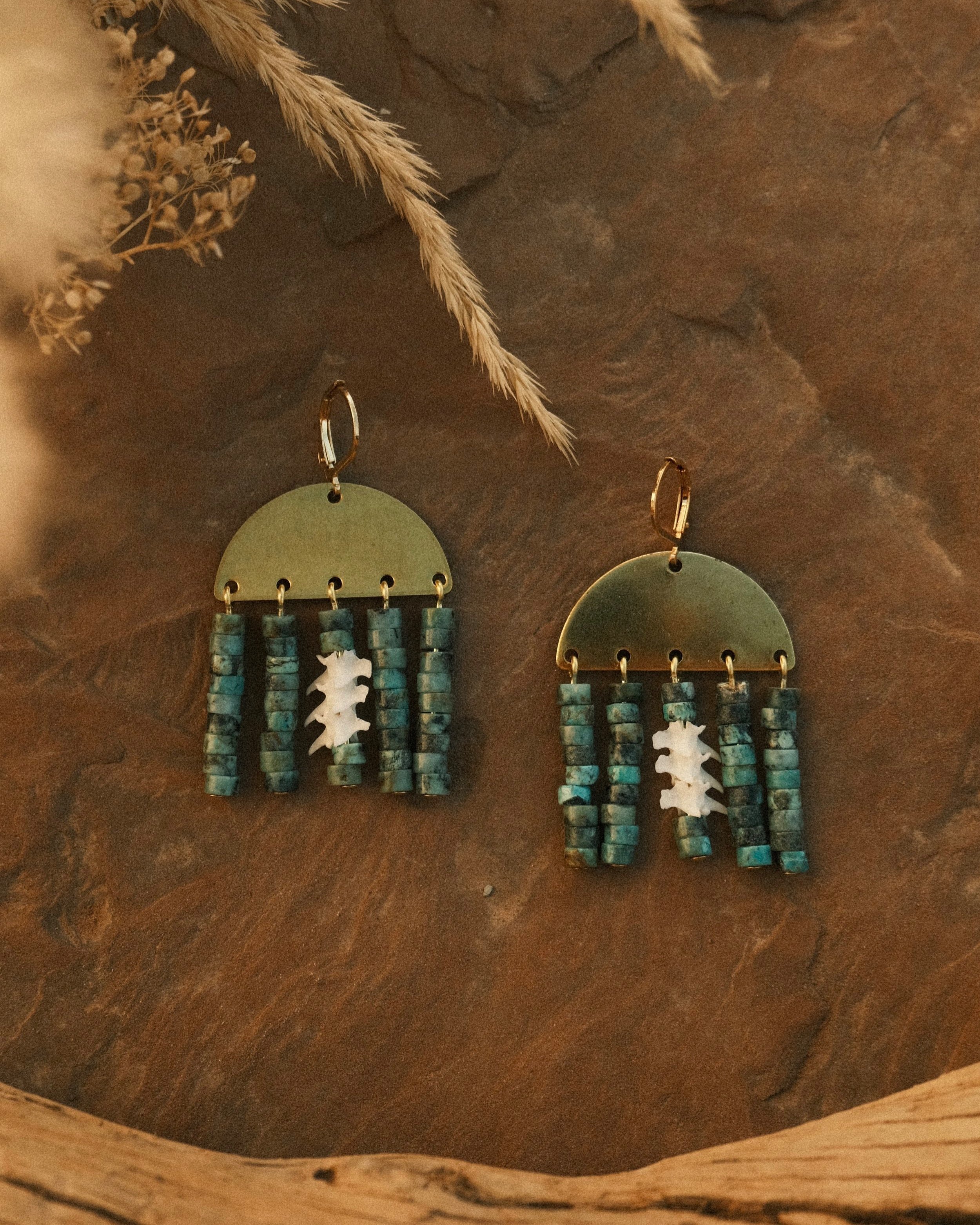 ✷ turquoise, ethically collected western diamondback rattlesnake vertebrae, and brass findings