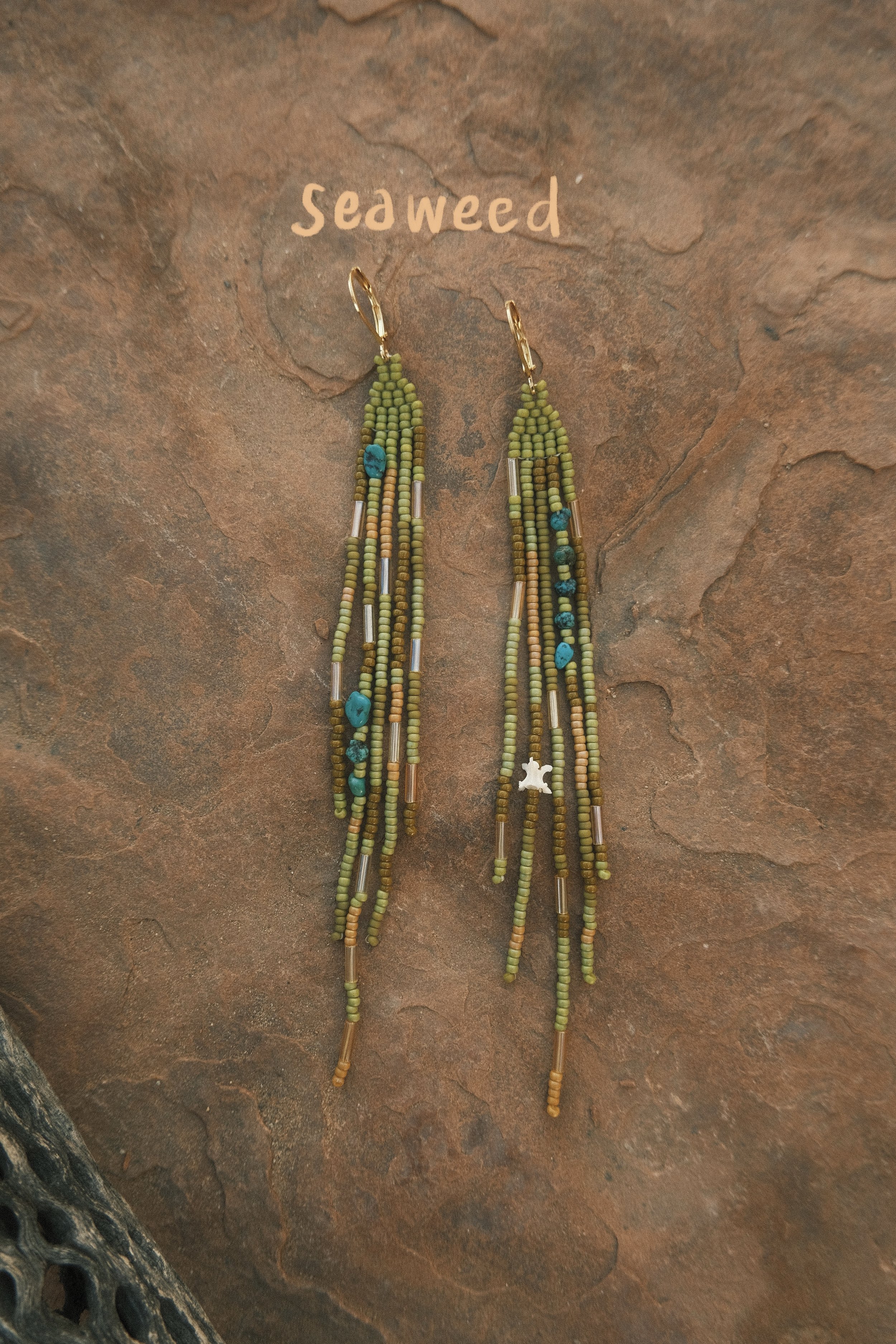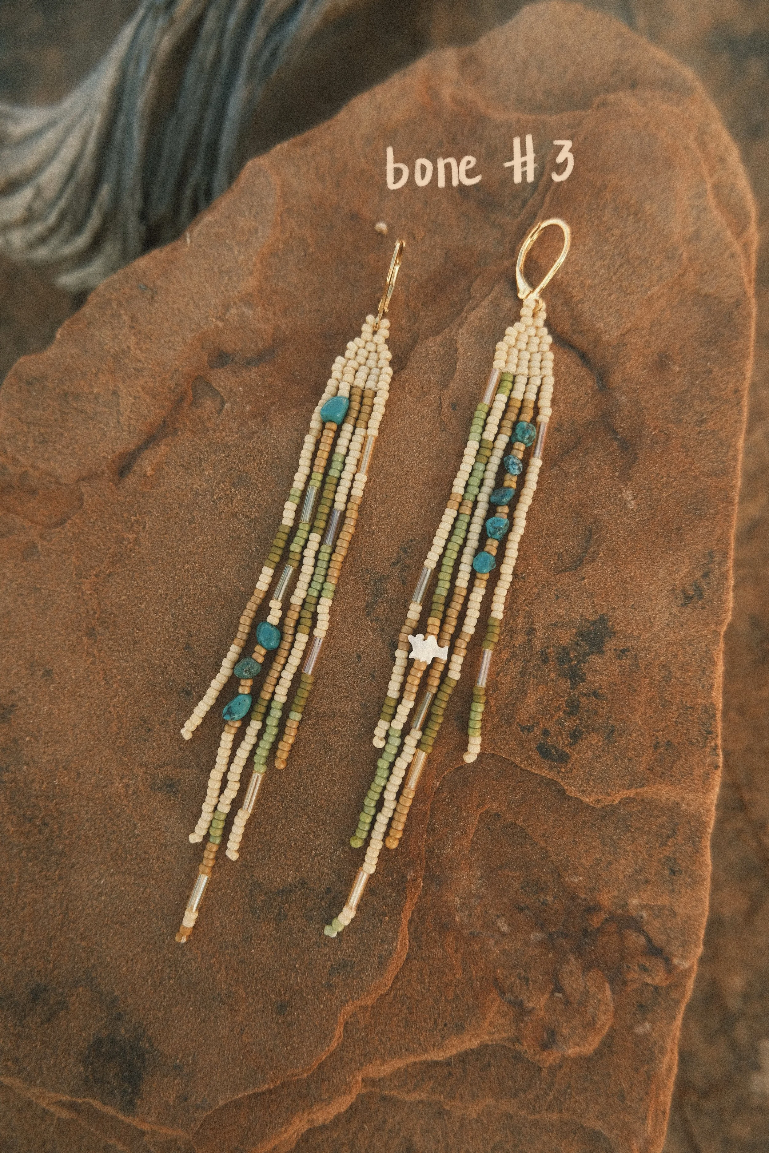 ✷ made with japanese glass beads, ethically collected rattlesnake vertebrae and kingman arizona turquoise.